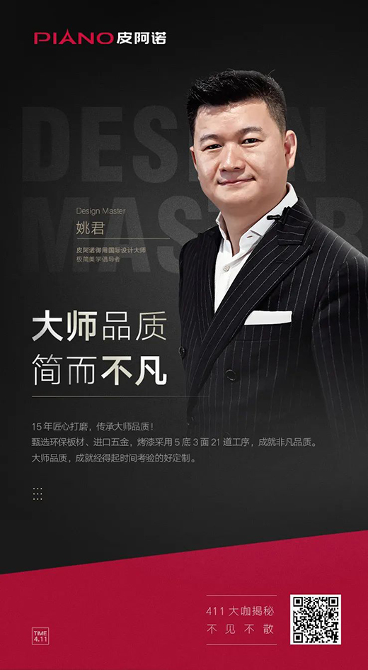 一路走來,皮阿諾始終秉承工匠精神,一步步實(shí)現(xiàn)品質(zhì)的不斷變革與提升。2020年,更是與國際知名大師-姚君先生深度合作,打造皮阿諾大師定制系列產(chǎn)品,用匠心打造“你的專屬高端定制家”,成就至臻至美的大師品質(zhì)。