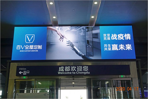 堅(jiān)持防疫不放松,穩(wěn)定生產(chǎn)不懈怠!同時(shí),百V櫥柜精準(zhǔn)把控時(shí)間節(jié)點(diǎn),投放LED廣告于成都機(jī)場(chǎng),為上半年?duì)I銷工作推進(jìn),加油助威。