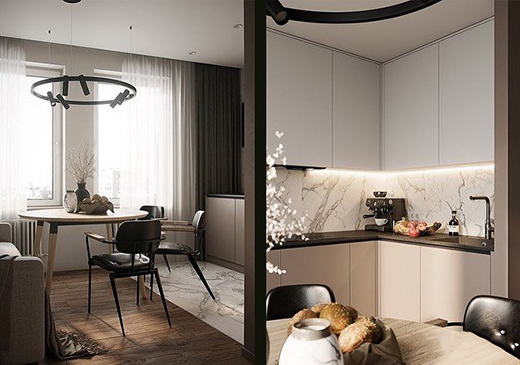 暖白與暖淺黃的融合協(xié)調(diào)自然,看似不大的空間里一應(yīng)俱全,右側(cè)是收納柜,趣藏生活小物,收的是心情,放的是幸福。輕奢不代表華而不實(shí)的揮霍,簡(jiǎn)簡(jiǎn)單單就好。