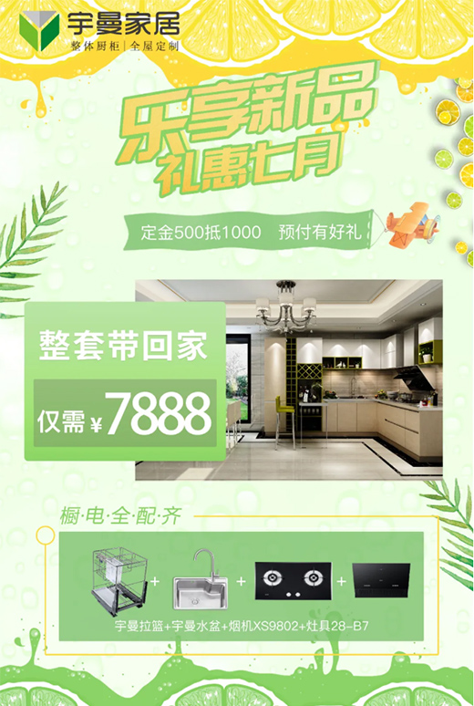 宇曼櫥柜深諳消費者的消費需求,所以推出一款和帥康電器合作的櫥電一體的爆款套餐,限時特惠,僅需7888元整套即可帶回家,櫥柜、水盆、拉籃、煙機灶具全配齊。夠?qū)嵒莸膬r格,超實用的產(chǎn)品,等你來購!