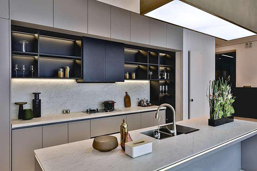 此外,水槽和灶具之間要保持一定的距離,這樣清洗蔬菜等之后可以方便馬上下廚。由于不銹鋼櫥柜臺面與水槽一體焊接,灶具的開孔也需要提前確認(rèn),所以前期的整體設(shè)計非常重要。