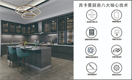 西卡曼推崇極致工藝?yán)砟?,公司掌握廚房8大核心技術(shù),一體成型無縫焊接,面板防脫落技術(shù),精準(zhǔn)定位技術(shù),冰箱式柜體內(nèi)膽技術(shù),智能照明技術(shù),耐劃抗磨技術(shù),智能電動(dòng)科技技術(shù),仿真木紋技術(shù),只為您打造更健康更高品質(zhì)的家居生活!