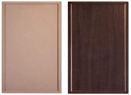 圖:混油工藝-左 實木貼皮工藝-右