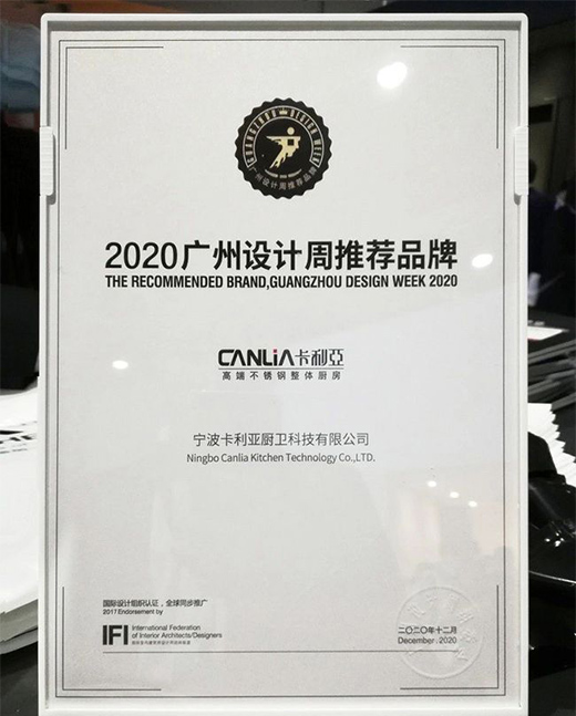 祝賀卡利亞榮不銹鋼櫥柜獲2020廣州設(shè)計(jì)周推薦品牌