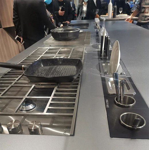 隨著現(xiàn)代消費(fèi)市場對(duì)健康生活與品質(zhì)需求越來越高,有顏有品的不銹鋼高定產(chǎn)品已深受歡迎。卡利亞洞察用戶、美學(xué)、生活的真正需求,展館內(nèi)通過不同風(fēng)格、不同色系、不同陳列、不同設(shè)計(jì)的產(chǎn)品搭配各式軟裝,通過不同規(guī)格、不同工藝與美學(xué)的結(jié)合,設(shè)計(jì)出舒適而又高品質(zhì)的生活方式。
