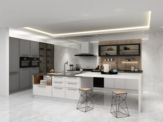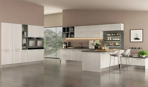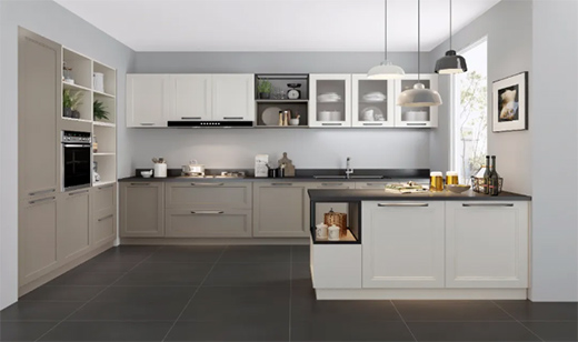 烤漆門板櫥柜色澤鮮艷,具有亮面感,經(jīng)典耐看;吸塑門板造型更具備立體感,可塑性強(qiáng);