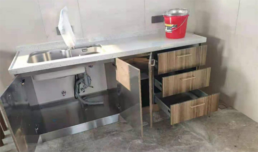 傳統(tǒng)的木質(zhì)櫥柜在設(shè)計(jì)上存在很多接口處,容易導(dǎo)致水順著縫隙滲入柜體,柜體受潮后材質(zhì)開始發(fā)霉發(fā)臭、腐蝕變形,極大地縮短了櫥柜的使用壽命。而且木材發(fā)霉腐爛時(shí)會(huì)產(chǎn)生熱量,櫥柜瞬間就成了蛾蚋、白蟻、蟑螂等蟲子成長的溫床,這不僅影響廚房美觀,還存在極大的衛(wèi)生隱患。