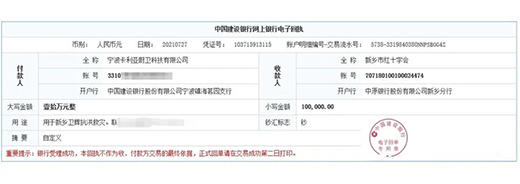 2021年7月27日,寧波卡利亞廚衛(wèi)科技有限公司向新鄉(xiāng)市紅十字會(huì)盡一份社會(huì)責(zé)任,用于新鄉(xiāng)衛(wèi)輝抗洪救災(zāi)工作。