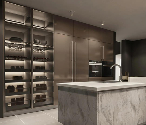巧用玻璃是一種自帶高級感的設(shè)計,靈動通透的玻璃能讓廚房空間更明亮。