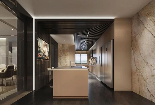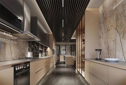 舒適的廚房環(huán)境,能讓人心情愉悅??ɡ麃営煤唵蔚木€條勾勒出空間的美感和質(zhì)感,匠心的工藝和智能的科技,搭配上人性化的設(shè)計,讓整個空間溫馨又舒適。
