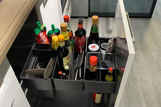 廚柜選用優(yōu)質(zhì)五金配件,不管是抽屜滑軌,還是柜門鉸鏈,都能輕松順暢開合。吊柜、地柜以及高柜內(nèi)部均可貼心定制適合的拉籃、隔板、置物架等收納系統(tǒng),讓廚房物品都能找到自己的棲身之所,且方便找尋。