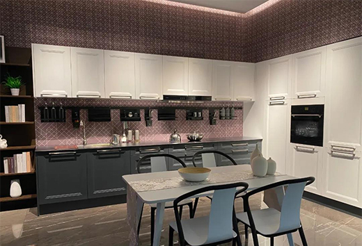 卡利亞還擁有自主研發(fā)的熱固微晶工藝,其中的煙熏色、仿古柚木等木紋自帶輕奢高級(jí)感,提升廚柜的顏值,讓廚房不再單調(diào)。此外,仿巖板、純色系也適配當(dāng)下流行的多種風(fēng)格,表達(dá)對(duì)高品位生活的追求。