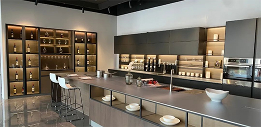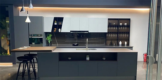 社交型廚房大多數(shù)以島臺設(shè)計為中心,卡利亞的集成式島臺設(shè)計在一體成型的耐刮花臺面上,集成了灶臺、水槽、收納、操作等功能,既能在臺面上直接進行清洗、切菜和烹飪,又能進行碗碟筷及刀具的收納,還能實現(xiàn)家人之間的情感互動。
