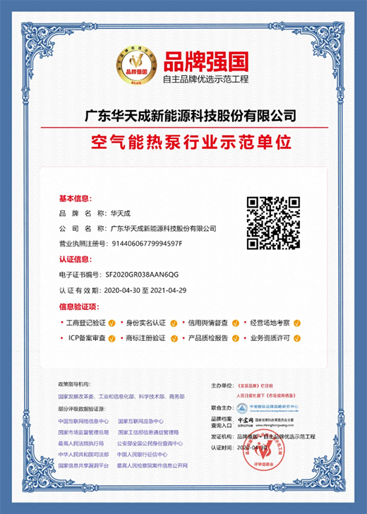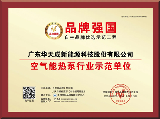 近日,經(jīng)過(guò)品牌強(qiáng)國(guó)·自主品牌優(yōu)選示范工程辦公室審核、網(wǎng)絡(luò)輿情指標(biāo)監(jiān)察、社會(huì)公示等入圍審查流程,廣東華天成新能源科技股份有限公司成功入選品牌強(qiáng)國(guó)?自主品牌優(yōu)選示范工程空氣能熱泵行業(yè)示范單位。作為空氣能行業(yè)專(zhuān)業(yè)領(lǐng)軍品牌,華天成此次入選“品牌強(qiáng)國(guó)工程”,展現(xiàn)了其在科技創(chuàng)新和品牌實(shí)力等方面的引領(lǐng)作用獲得國(guó)家級(jí)媒體平臺(tái)的認(rèn)可。