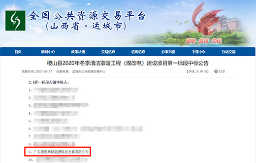 8月16日,稷山縣2020年冬季清潔取暖工程(煤改電)建設(shè)項(xiàng)目中標(biāo)名單公布,紐恩泰空氣能成功中標(biāo),充分顯示出紐恩泰品牌的強(qiáng)大影響力和市場競爭力。