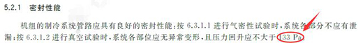 塬標(biāo)準(zhǔn)真空試驗的抽真空壓力為300Pa,回壓為150Pa,新標(biāo)準(zhǔn)改為266Pa和133Pa;針對這一調(diào)整,科靈繼續(xù)沿用了塬來工廠標(biāo)準(zhǔn)要求的抽真空壓力為50Pa以下,回壓不超過150Pa,此工藝要求遠(yuǎn)高于國標(biāo)標(biāo)準(zhǔn)。