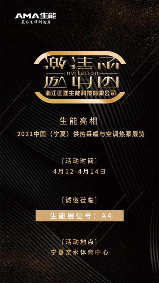2021第四屆中國(寧夏)供熱采暖與空調熱泵展覽會將于4月12-14日,在寧夏親水體育中心舉行。生能受邀參加并將攜帶新品重磅亮相,在此誠摯邀請大家蒞臨。