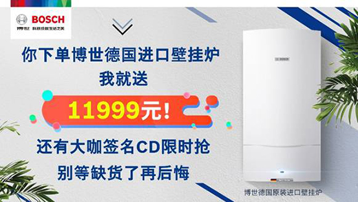 千元補(bǔ)貼萬(wàn)元豪禮 博世壁掛爐全年鉅惠 僅此一次