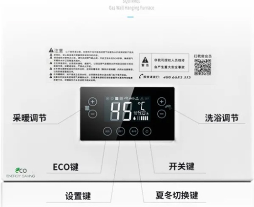 小松鼠B20壁掛爐采用一鍵ECO節(jié)能、全新觸摸操作設(shè)計(jì),觸摸即可切換模式,水溫也會(huì)隨著室外溫度變化而變化,實(shí)現(xiàn)屋內(nèi)恒溫。IML黑色操作面板,不僅老人操作方便,還防水防油煙,清理起來(lái)更方便。