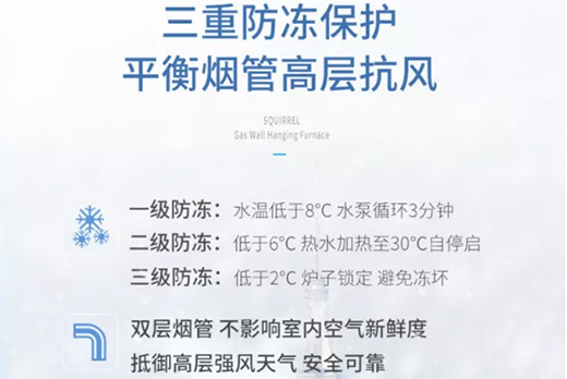 更有三重防凍保護(hù),平衡煙管高層抗風(fēng),避免壁掛爐因氣溫太低而被凍壞。雙層煙管設(shè)計(jì),既不影響室內(nèi)空氣新鮮度,也能抵御高層強(qiáng)風(fēng)天氣,使用起來(lái)更安全可靠。