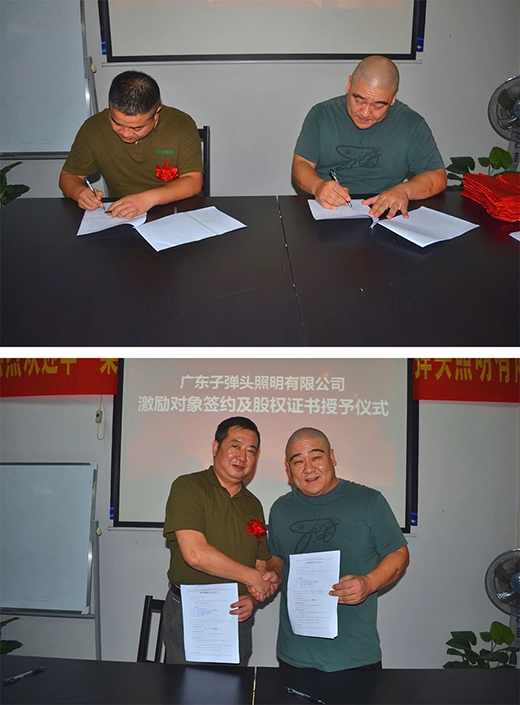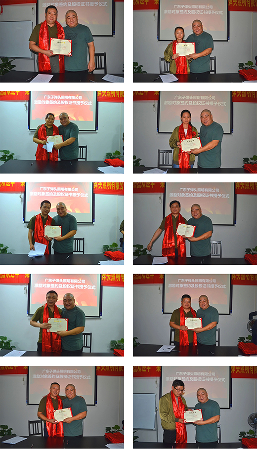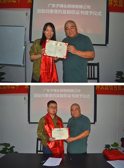 在此,恭賀今天家人們與子彈頭照明“喜結(jié)良緣”,成為首批股權(quán)激勵對象。相信在不久的將來,會有更多勤勞優(yōu)秀、業(yè)績卓越的家人們,通過努力成為子彈頭照明的合伙人。