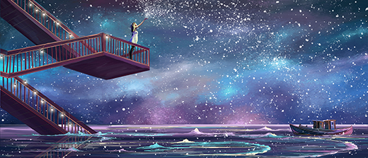 深不見底的星河仿佛是某種緩緩流動(dòng)的液態(tài),裹著沉浮間明滅不定的群星,遠(yuǎn)處星光與近處繁花錯(cuò)落交織,盡顯層次美感,風(fēng)情萬(wàn)種的神秘魅力,讓人時(shí)刻準(zhǔn)備好到神秘花境探險(xiǎn)。