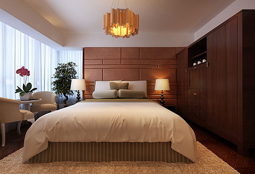 臥室屬私密空間,燈光要營造"溫馨"的氛圍,裝飾性遠高于實用性。臥室照明的出發(fā)點是以總體照明的主要光源為主,再配以裝飾性照明和重點照明來營造空間氣氛。