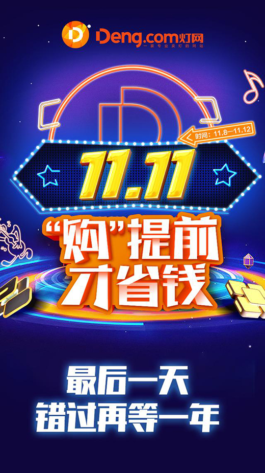 隨著這一場光影變換的盛大晚會落幕,雙十一狂歡的尾聲響起。昭示了每一位Deng.com燈網(wǎng)家人的必然相遇,讓我們共同期待著,Deng.com燈網(wǎng)的新起航、新天地!