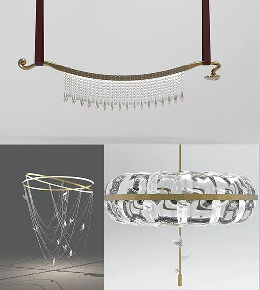 ▲奢簡(jiǎn)燈飾春季新品(上:“如意”系列;左下:“iris”系列;右下:“秋收”系列)