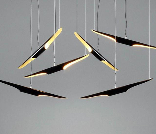 Coltrane吊燈帶有濃濃的極簡主義和工業(yè)氣息,竹簡的造型可通過調(diào)整線的長度,讓吊燈產(chǎn)生不同的傾斜角度。每一個(gè)燈柱都獨(dú)立存在,又相互結(jié)合成為一個(gè)整體,讓光線有更多的展現(xiàn)空間。