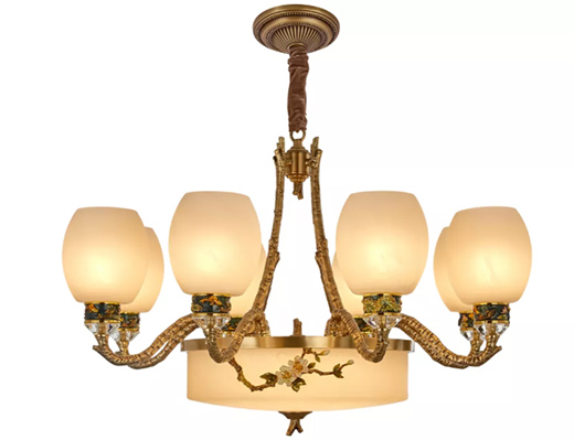 精雕細琢.至臻至美海棠歸系列是技術與造型藝術相結合的藝術品,在視覺效果上生動而親切,在功能上巧妙而實用采用工業(yè)專業(yè)H62黃銅,經久耐用且相對于其他材質更顯質感,仿玉玻璃燈罩的運用,性價比高。
