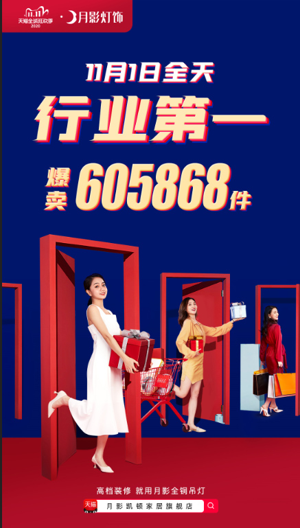 11月1日當(dāng)天,相信很多消費(fèi)者都是從零點(diǎn)開始,化身“尾款人”,在這場(chǎng)購(gòu)物浪潮中忙著清空自己的購(gòu)物車。作為疫情后最大的購(gòu)物狂歡季,今年天貓雙11比往年多了3天,分為兩波售賣期:11月1日-3日為第一波,11月11日為第二波。在這第一波熱潮中,月影燈飾首戰(zhàn)告捷,交出了一份滿意的答卷。據(jù)電商銷售數(shù)據(jù)顯示,月影燈飾11月1日全天創(chuàng)行業(yè)第一佳績(jī),累計(jì)爆賣產(chǎn)品數(shù)達(dá)605868件。