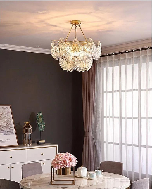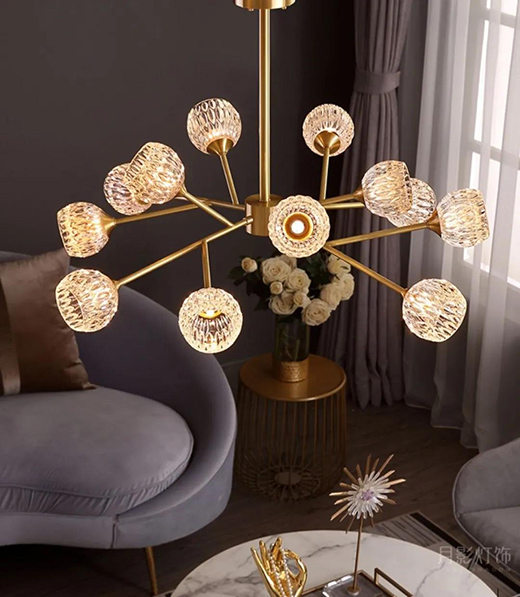 以枝蔓為創(chuàng)作靈感,汲取樹枝自然延伸的線條,融入黃銅的元素,做成一盞輕奢水晶吊燈。甄選A級水晶,全程手工制作。高折射率玻璃燈罩,凈透不含雜質(zhì)。水波紋紋理,給予光新的意義,光效璀璨浪漫。