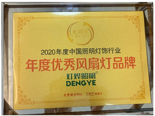燈燁照明榮獲“光明獎(jiǎng)”2020年度中國(guó)照明燈飾行業(yè)年度優(yōu)秀風(fēng)扇燈品牌