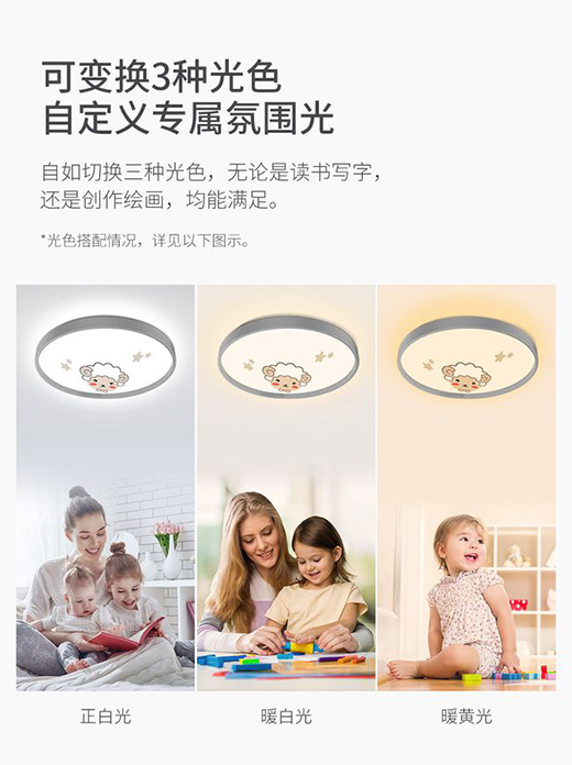 適合兒童房的燈具應該以基礎照明為主,搭配氛圍照明、功能照明為輔,既要滿足空間內除正常照明外其他功能(如看書、游戲),又結合了兒童處于發(fā)育狀態(tài)期對健康光環(huán)境的需求。