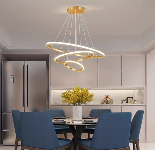 同時,這款燈飾采用圓環(huán)設(shè)計,踐行幾何藝術(shù),創(chuàng)造美感,成為單調(diào)、乏味生活中的“一抹光彩”。圓環(huán)邊采用金屬材質(zhì)打造,充滿高級感的金色與LED燈光,交相輝映,點綴整個空間。錯落有致的鋼條,從視覺上拉伸空間,與不規(guī)則的圓環(huán),定義光影藝術(shù)。如此精巧的燈飾,如同藝術(shù)品一般,“點亮”所到之處。