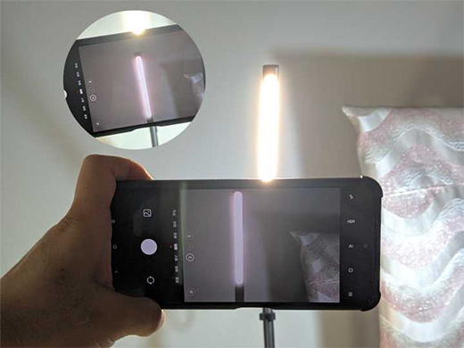 另一方面,它還通過了國A級(jí)讀寫作業(yè)臺(tái)燈照明標(biāo)準(zhǔn),光照范圍廣,照度均勻,無可視頻閃。我特意使用手機(jī)測(cè)試了下,從下圖可以看出米家臺(tái)燈1S 耀夜黑確實(shí)沒可視頻閃。