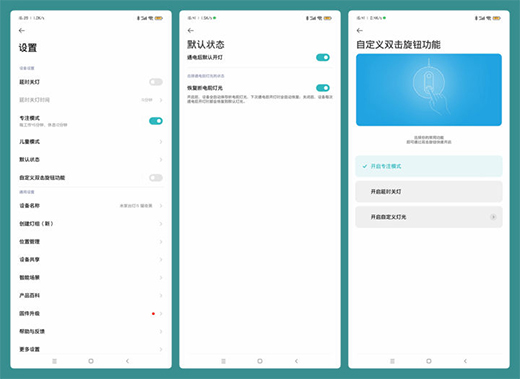 值得一贊的是,在設(shè)置操作界面,我們還可以對(duì)米家臺(tái)燈1S 耀夜黑進(jìn)行“默認(rèn)狀態(tài)、自定義雙擊旋鈕功能”這2項(xiàng)非常暖心的操作,相較以往的燈,在智能玩法的可操作性上,這就非常棒啦!