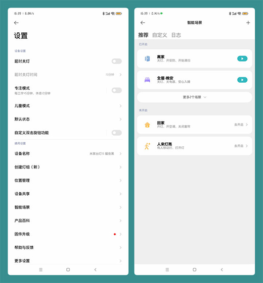 米家臺(tái)燈1S 耀夜黑也可使用米家APP默認(rèn)推薦的智能場(chǎng)景,甚至是自定義創(chuàng)建一些適用于自己實(shí)際情況的智能場(chǎng)景,從而聯(lián)動(dòng)你所綁定賬號(hào)下的不同米家智能設(shè)備,實(shí)現(xiàn)聯(lián)動(dòng)效果。
