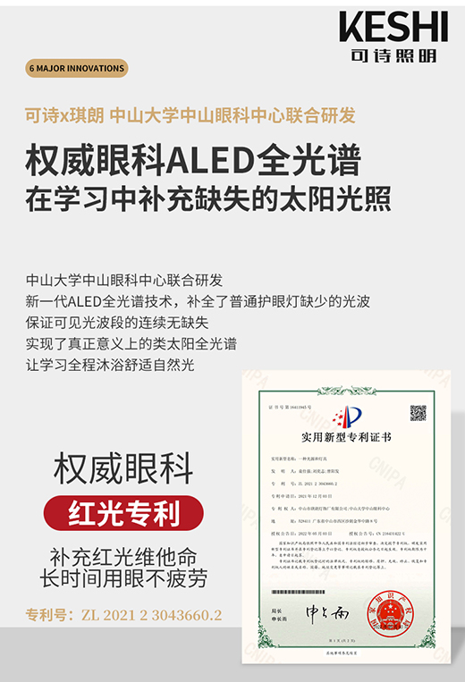 為滿足消費(fèi)者對(duì)健康光環(huán)境的期待,近日,KESHI可詩照明與KingLong琪朗燈飾強(qiáng)強(qiáng)聯(lián)手,正式聯(lián)名推出一款為守護(hù)用戶用光健康而生的ALED全光譜成長護(hù)眼燈!