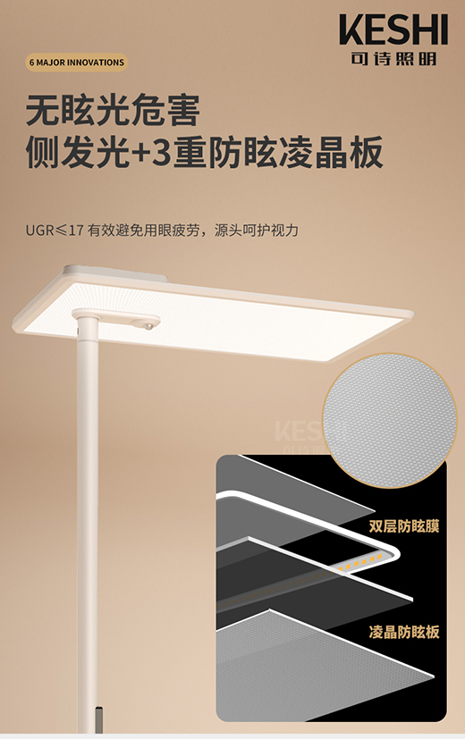 這款產(chǎn)品不僅巧妙地采用了側(cè)發(fā)光,且應(yīng)用上3重防眩設(shè)計(jì),包括雙層防眩膜及凌晶防眩板,防眩效果經(jīng)得起考驗(yàn)。經(jīng)測試,UGR≤17,無眩光危害,本款護(hù)眼燈產(chǎn)品真正做到從源頭呵護(hù)眼睛,有效避免使用者用眼疲勞。