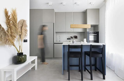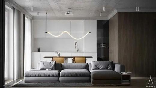 ▼ 小戶型現(xiàn)代公寓,直接頂面走明線,采用三頭明裝射燈以及局部燈帶照明,提升空間現(xiàn)代感,以及燈光的層次,視覺(jué)上非常簡(jiǎn)潔。