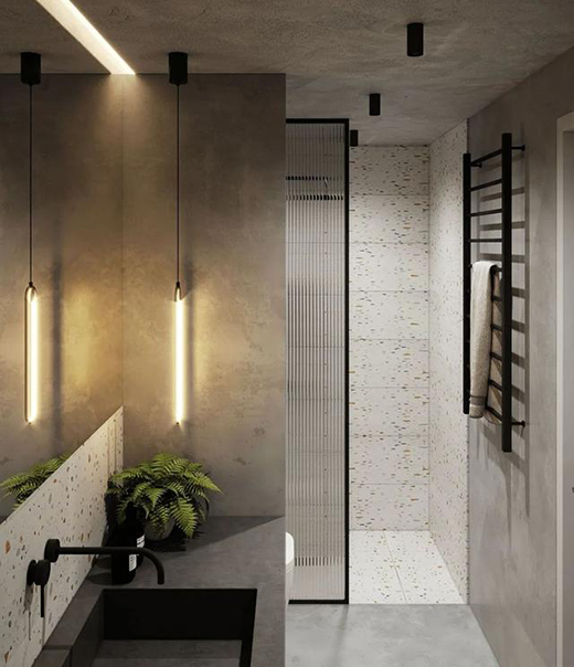 ▼ 洗漱空間主燈設(shè)計(jì),筒燈滿足小空間的照明,與鏡前燈、燈帶的組合讓空間層次豐富,滿足各區(qū)使用功能。