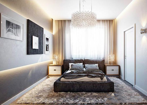臥室是休息睡覺的房間,要求有較好的私密性。光線要求柔和,不應有刺眼光,以使人更容易進入睡眠狀態(tài)。而穿衣化妝則需要均勻明亮的光線??蛇x擇光線不強的吸頂燈為基本照明,安置在天棚中間;墻上和梳妝鏡旁可裝壁燈;床頭配床頭燈,除了常見的臺燈之外,底座固定在床靠板上可調燈頭角度的現(xiàn)代金屬燈,美觀又實用。