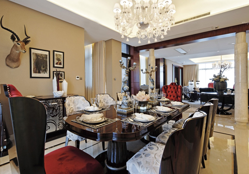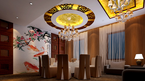 餐廳的照明起到了輔助燈光襯托環(huán)境的作用。使用輔助燈光主要不是為了照明,而是為了以光影效果烘托環(huán)境。因此,亮度比餐臺上的燈光要低。在突出主要光源的前提下,要做到有次序、不紊亂。