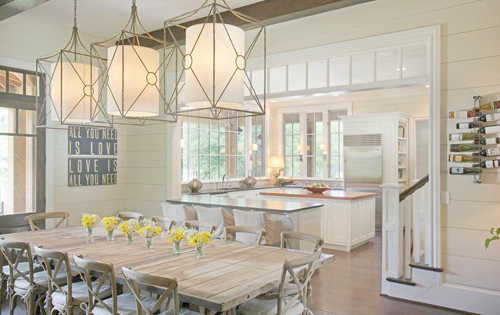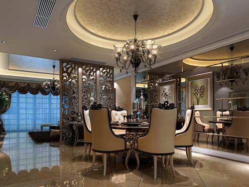 餐廳是家人聚餐的場(chǎng)所,要求主照明具有高顯色性、高照度的特點(diǎn)。一般采用吸頂燈或餐吊燈。在享用晚餐的時(shí)候,配上恰到好處的燈光,是能起到很好的烘托效果,你可以根據(jù)你的需要來(lái)調(diào)節(jié)燈光的效果。