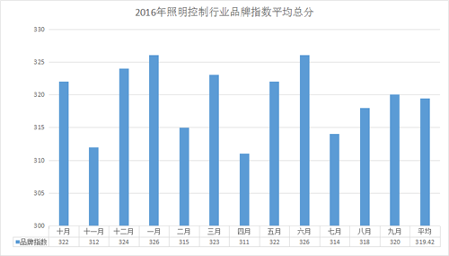 2016年照明控制行業(yè)品牌指數(shù)單項(xiàng)平均得分