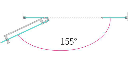 SA2除了簡練的外觀和內(nèi)部結(jié)構(gòu)里滿足實用的功能外,也充分考慮用戶的感受。如SA2采用超廣角合頁,實現(xiàn)了155°超大角度開門設(shè)計。普通淋浴房一般開門角度只能達到90度或者120度左右,開門角度比傳統(tǒng)淋浴房提高30%。更大的開門空間,既可以最大化降低門的存在感,又可以最大化提升空間利用率,使得用戶進出障礙更小,行動更方便自如。