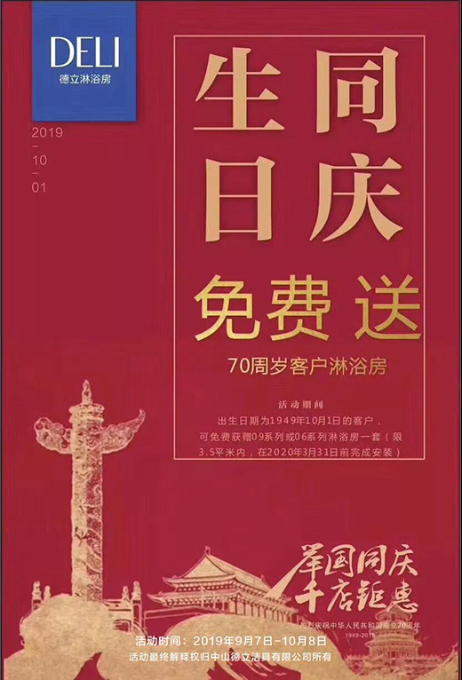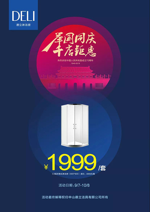 “舉國(guó)同慶 千店鉅惠”,德立淋浴房2019全國(guó)聯(lián)動(dòng)促銷(xiāo)火熱來(lái)襲