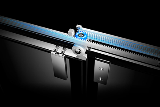 齒牙精密,省力穩(wěn)定。SL3導(dǎo)軌下隱藏著精密的水平齒輪傳動結(jié)構(gòu),雙齒輪搭配不銹鋼導(dǎo)向輪,齒輪精度吻合度高,穩(wěn)定性好,移動推拉更省力,更穩(wěn)固。